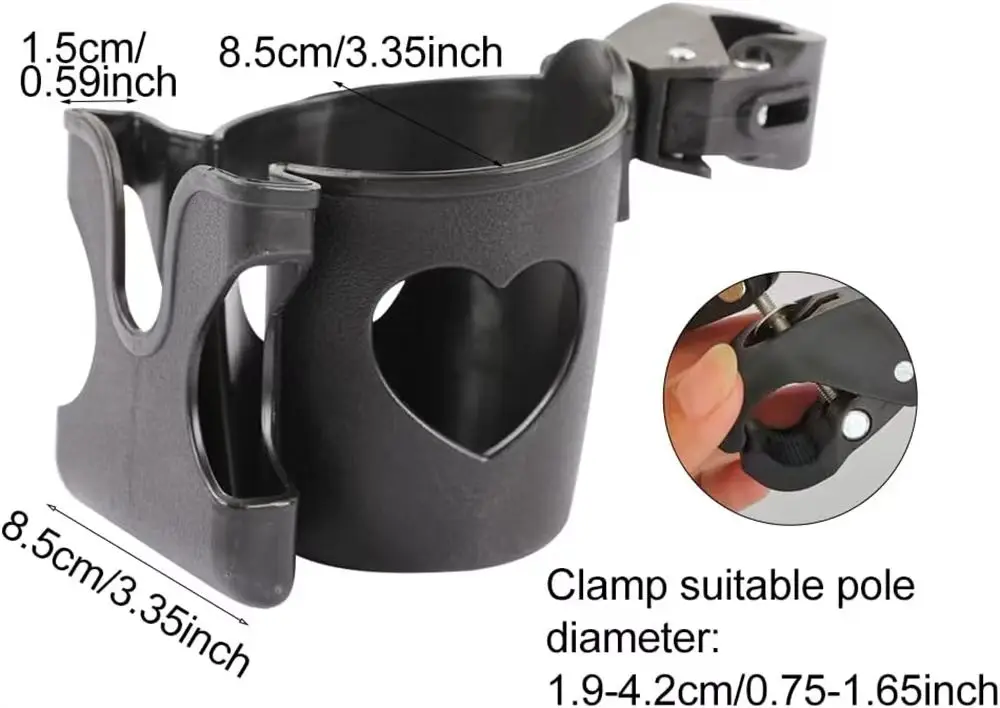 Size(approx.): (bottle holder diameter x phone holder length x phone holder width x clamp suitable pole diameter) 8.5 x 8.5 x 1.5 x 1.9-4.2cm/3.35 x 3.35 x 0.59 x 0.75-1.65inch