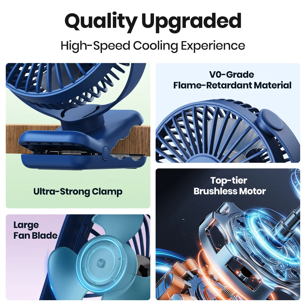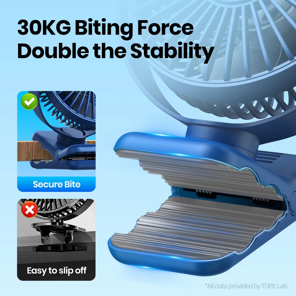 TOPK Mini Portable Clip-On Fan, USB Desk Fan with 3 Quiet Speed Settings, 720° Rotation for Personal Use - Ideal Standing Fan for Home and Room-TrendoraShops