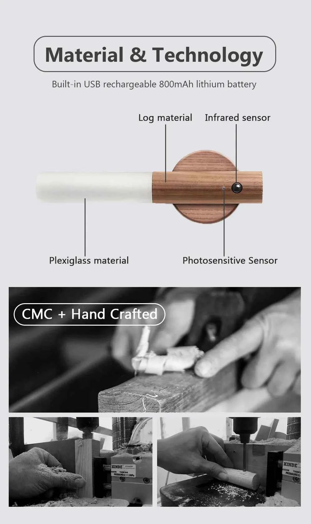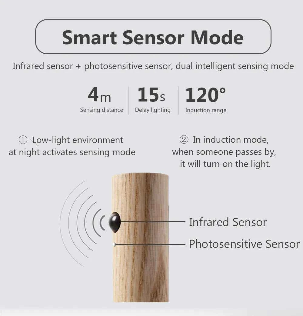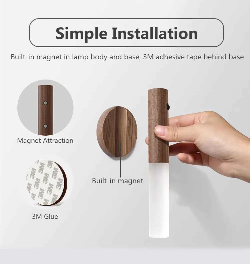 Auto LED USB Magnetic Wood Wireless Night Light Corridors Porch Lights PIR Motion Sensor Wall Light Cabinet Lamp