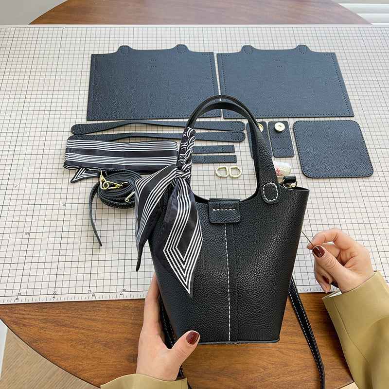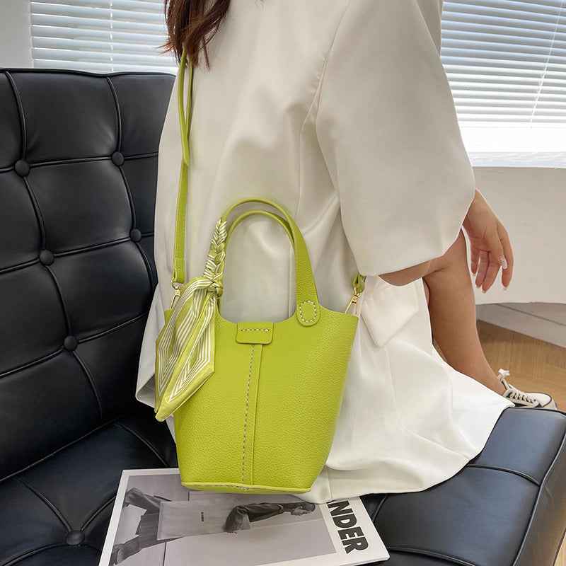 Western-style Bucket Bag With Silk Scarf For Women
