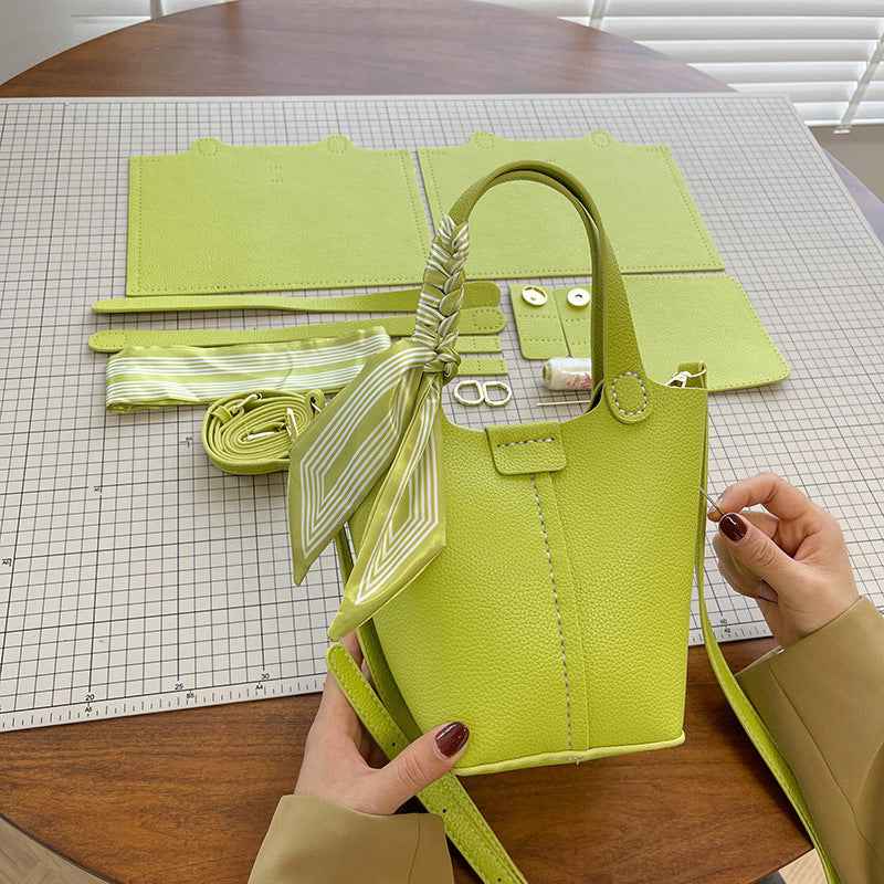 Available in four attractive colors—Black material kit, Beige material kit, Green material kit, and Light yellow material kit—the bag suits diverse tastes and personal styles. These colors complement a wide range of outfit choices, making this item a perfect addition to any fashion collection. The practical design features a 3D outer pocket, allowing for easy access to essentials while on the move.